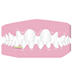 Las coronas de los dientes anteriores superiores cubren casi por completo las coronas de los dientes inferiores.